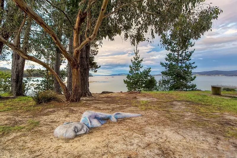 我是在Peppermint Bay一处功能中心的园内发现这具雕像的,不过并不清楚它的名字。从背面看起来就是很多小岩石组合在了一起,等我走到前面的时候才发现是个女子雕像,女子沉睡着,一半已经浸入土里,附近则是安静的海湾以及行驶的小船,画面太美,必须要拍下来。