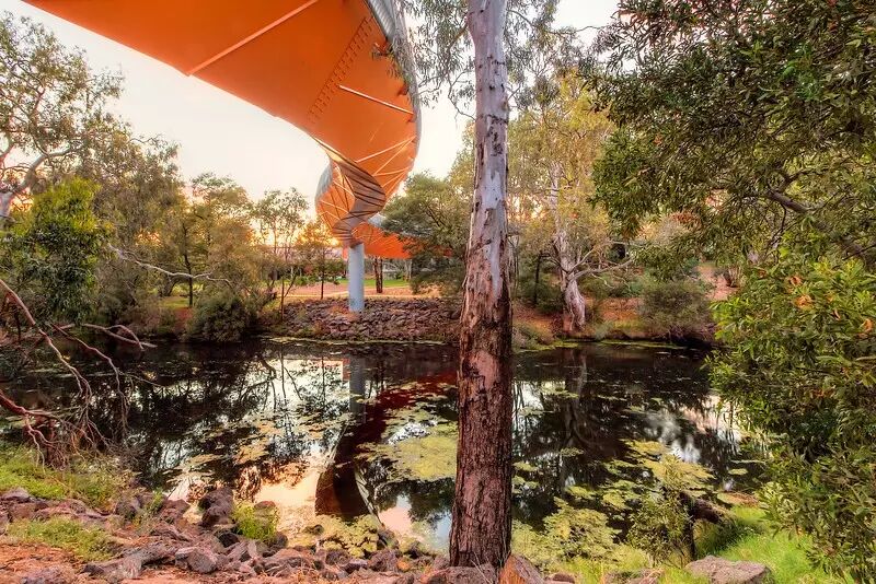 看起来很像一只橙色的蛇的东西其实是横跨Werribee河的一座可爱的步行天桥,对于周围的美景来说,这座金属建筑的确有点格格不入,不过正是因为这强烈的反差让我实在忍不住要拍下来。