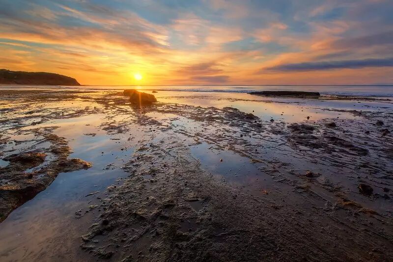 我在新州南部海岸的Eden海滩上散步时发现光线非常奇怪,不得不承认景色很美,颜色也很绚烂,但由于低空有云朵因此光线非常柔和。下面的水速由于非常慢,因此水面也很柔美,这与沙滩上被掩埋的枯树枝和远处的岩石形成了鲜明的对比。背景里的船一直在动,想要拍到一张好照片真是难得,不过静谧的沙滩和沙中的残枝加分不少。