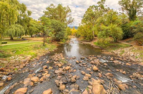 Ovens River蜿蜒穿过了Bright,顺着这条河就有一条被称作Canyon Walk的徒步之路,整个Canyon Walk穿过了附近的小镇,而且在河两岸都有分布。我到达这座美丽的小镇的时候,河水几乎是不流动的,不过冬天结束前,冰雪融化的水就将从这里一路流向Wangaratta。