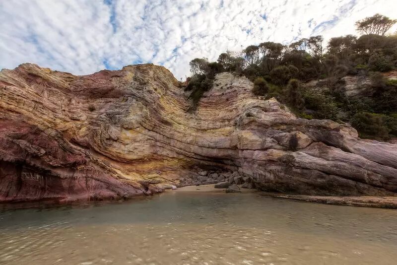 这些岩石位于新州南部海岸的Eden,最初吸引到我的是它们的颜色——粉色、黄色、黑色还有白色混合在一起;不过非同寻常的岩层以及岩石中间的涡状更令人吃惊。想象一下这需要多大的挤压力才能将岩石形成现在的样子,太令人震撼了。
