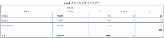 2015年,国有企业对澳投资出现了反弹,投资额占比达到49%,以中国投资有限公司投资澳大利亚Investa Office 写字楼信托基金,和中国电力投资集团公司对澳再生能源公司Pacific Hydro的投资为主导。从投资数量上看,2015年大部分的交易仍然由民营企业主导。我们的数据还显示出,民营企业的投资以数量大,金额小为特点。