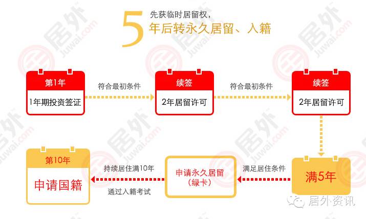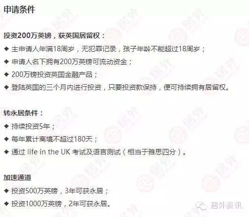 申请人维持投资满5年并且每年在英国居住满6个月,即可申请永久居住权。获得永久居留一年后,可以申请入籍,但要求过去5年离开英国不超过450天,最后1年离开英国不超过90天。