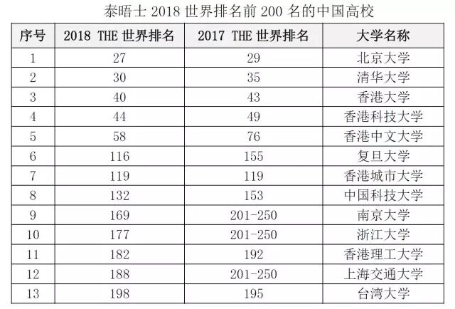 2018泰晤士高等教育世界大学排名